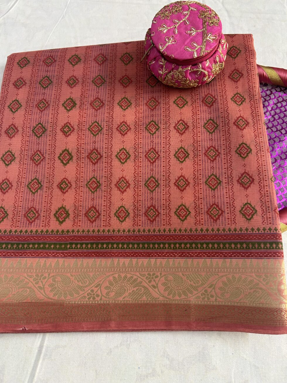“Elegant and breathable, this pure cotton saree offers timeless style and all-day comfort. Perfect for daily wear or casual outings, its soft texture and natural drape make it a must-have in every wardrobe.”
