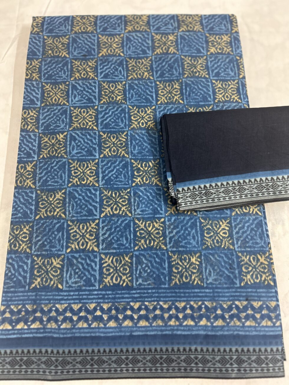 • “Woven from fine cotton threads, this saree is breathable, stylish, and perfect for warm weather. A blend of tradition and comfort in every fold.”