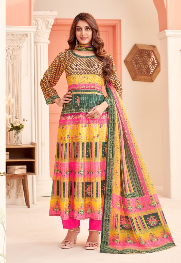 FULL GOWN THREE FOURTH SLEEVES , SILKY SMOOTH , PERFECT FIT WITH SILK PANT AND DUPATTA .