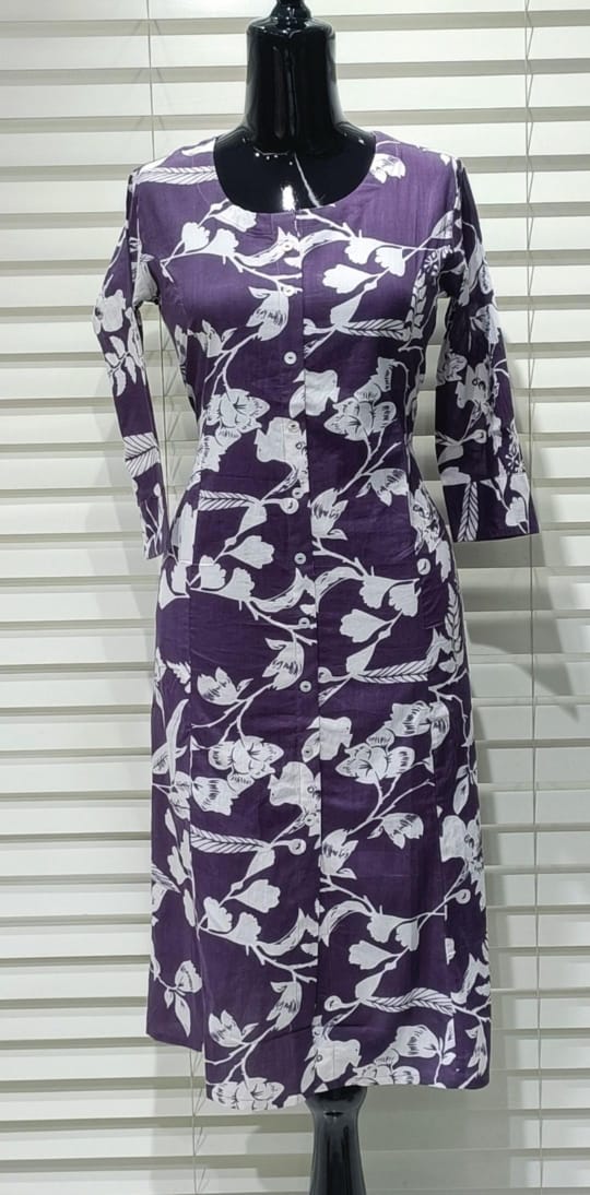 A cotton kurti is a comfortable and breathable traditional Indian garment made from cotton fabric. It typically features a loose, relaxed fit with a variety of designs, such as straight cuts, A-line, or flared. Perfect for casual wear or semi-formal occasions, a cotton kurti can be paired with leggings, churidars, or jeans, offering both comfort and style.