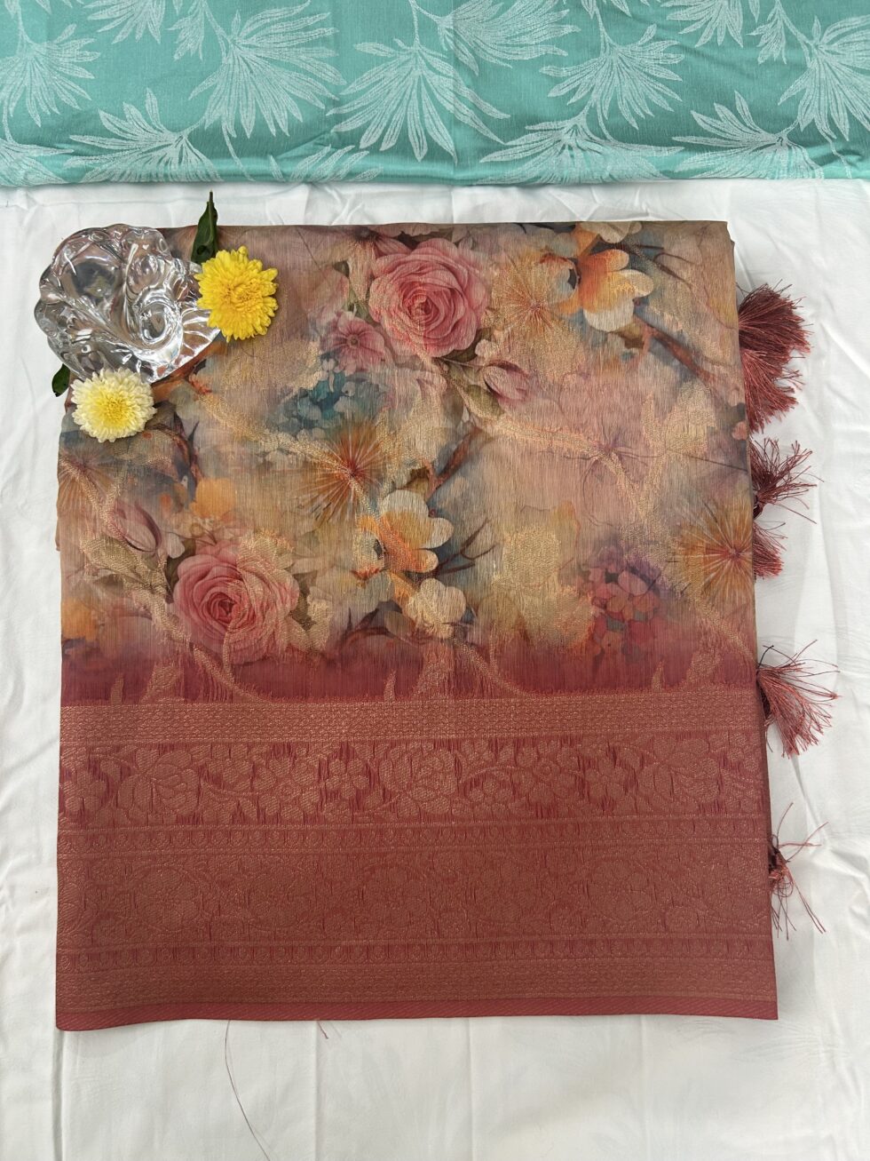 MULTI PASTEL COLOUR CHANDERI SILK SAREE WITH BLOUSE , LIGHT WEIGHT , FEEL SOFT , GRAND SAREE, STUNNING LOOK , BEAUTIFULL PRINTS , ALL OVER THE SAREE .
