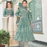 • Anarkali Kurti: A long, flared style inspired by the Mughal era, often with intricate embroidery.