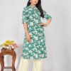 A kurti is a traditional South Asian garment, typically worn by women. It is a tunic-style top that can vary in length, from hip-length to knee-length or even longer. Kurtis are often made from cotton, silk, or other fabrics and are adorned with different styles, embroidery, and patterns. They are usually paired with leggings, jeans, or salwars for a complete outfit and can be worn casually or for more formal occasions. Kurtis are popular for their comfort and versatility.