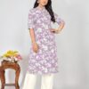 A kurti is a traditional South Asian garment, typically worn by women. It is a tunic-style top that can vary in length, from hip-length to knee-length or even longer. Kurtis are often made from cotton, silk, or other fabrics and are adorned with different styles, embroidery, and patterns. They are usually paired with leggings, jeans, or salwars for a complete outfit and can be worn casually or for more formal occasions. Kurtis are popular for their comfort and versatility.