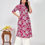 A kurti is a traditional South Asian garment, typically worn by women. It is a tunic-style top that can vary in length, from hip-length to knee-length or even longer. Kurtis are often made from cotton, silk, or other fabrics and are adorned with different styles, embroidery, and patterns. They are usually paired with leggings, jeans, or salwars for a complete outfit and can be worn casually or for more formal occasions. Kurtis are popular for their comfort and versatility.