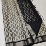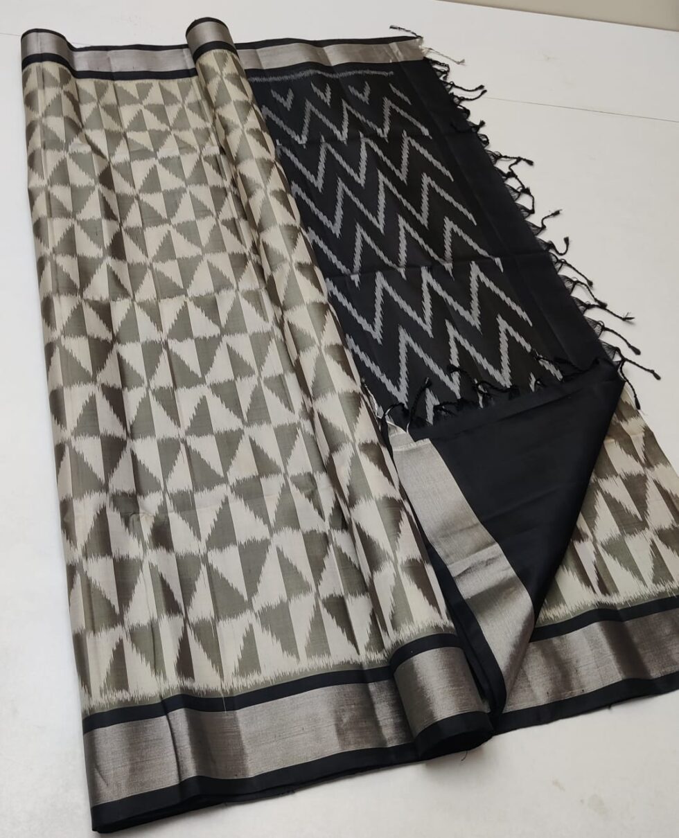 PURE SOFT SILK POCHAMPALLI SAREE – CREAM WITH BLACK