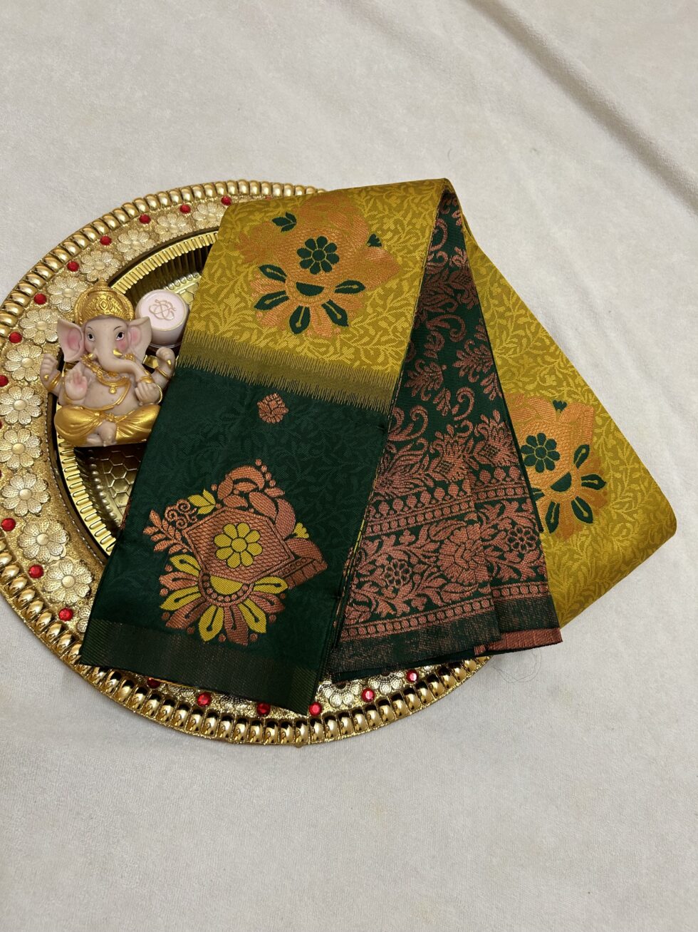 “Lustrous and lightweight, the soft silk saree drapes like a dream. With its smooth texture and elegant fall, it’s perfect for both everyday grace and festive charm.”