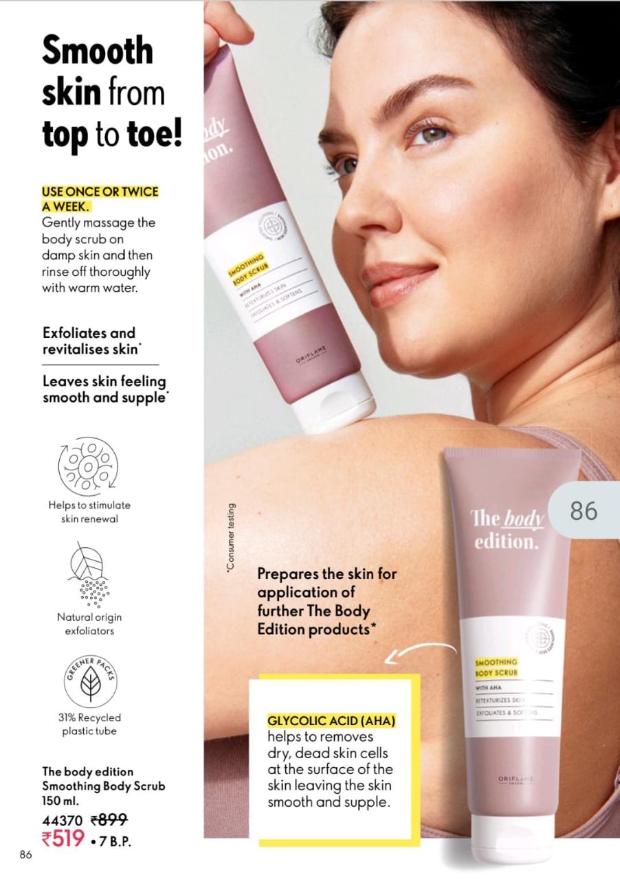 Gently massage the body scrub on damp skin and then rinse off thoroughly with warm water. Exfoliates and Revitalises skin*Leaves skin feeling smooth and supple