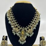 A masterpiece of elegance and sophistication this necklace features dazzling with AD stones and delicate gold beads. its exquisite design will elevate any outfit , while its long length adds a touch of luxury and refinement .perfect for the discerning woman who appreciates timeless beauty and quality.