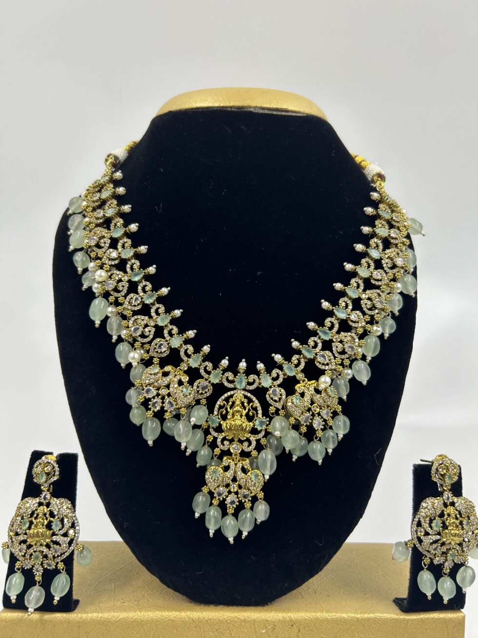 VICTORIAN LAKSHMI PENDANT NECK SET – LIGHT EMERALD GREEN