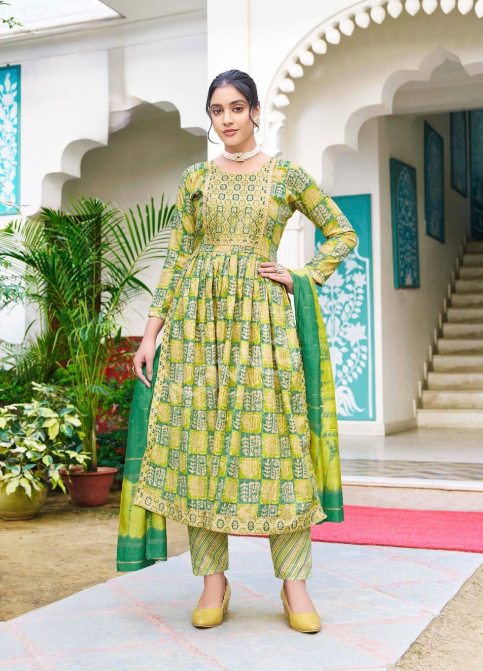• Anarkali Kurti: A long, flared style inspired by the Mughal era, often with intricate embroidery.